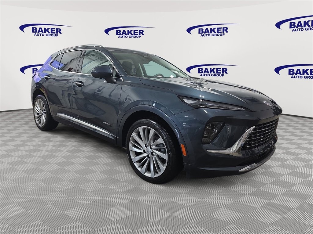 Quartz Blue Metallic 2026 Buick Envision Avenir AWD 9-Speed Automatic 2.0L Turbocharged Envision Avenir, 4D Sport Utility, 2.0L Turbocharged, 9-Speed Automatic, AWD, Quartz Blue Metallic, Ebony Seats With Ebony Interior Accents Leather, Navigation System, Preferred Equipment Group 1SU.