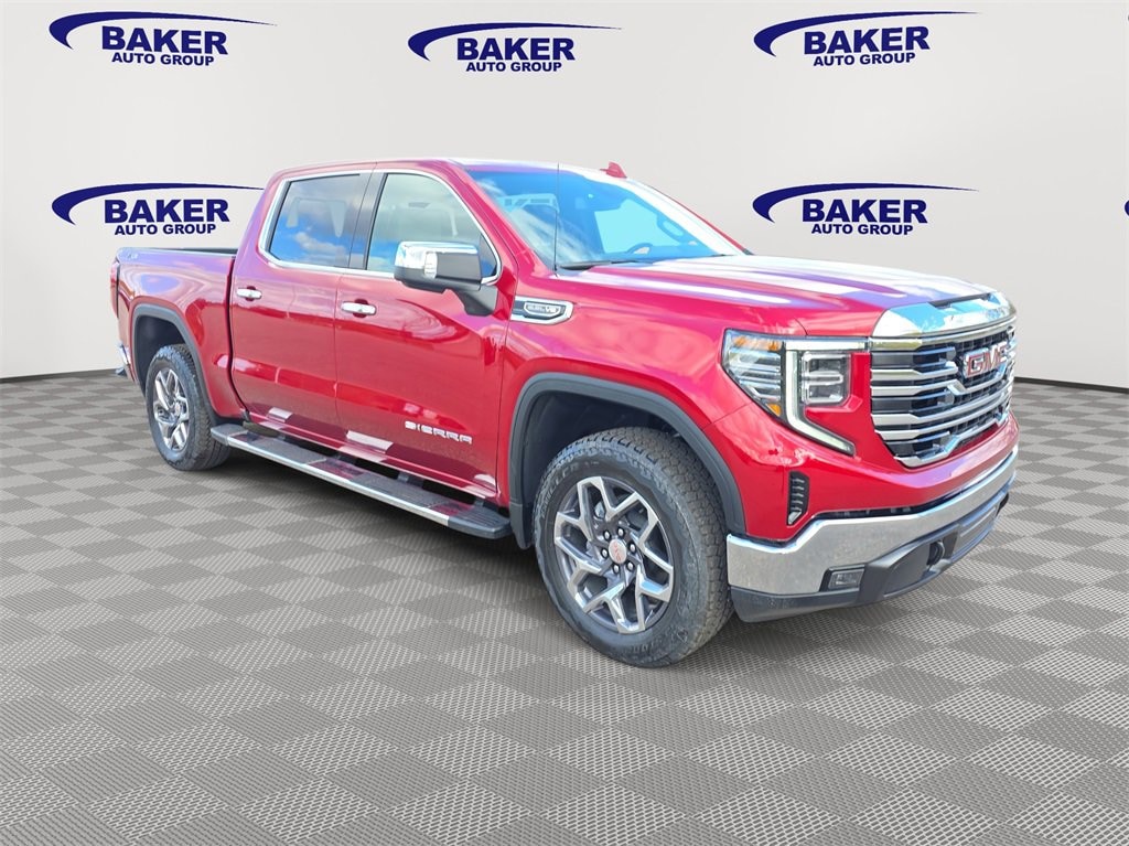 Volcanic Red Tintcoat 2026 GMC Sierra 1500 SLT 4WD 10-Speed Automatic EcoTec3 5.3L V8 Sierra 1500 SLT, 4D Crew Cab, EcoTec3 5.3L V8, 10-Speed Automatic, 4WD, Volcanic Red Tintcoat, Dark Walnut/Slate Leather, 120-Volt Bed Mounted Power Outlet, 120-Volt Interior Power Outlet, 170 Amp Alternator, 2 Charge/Data USB Ports, 2 Charge/Data USB Ports Inside Center Console, 2 Type-C Charge-Only Rear USB Ports, 20 Polished Aluminum Wheels, 6-Speaker Audio System Feature, Adaptive Cruise Control, All-Weather Floor Liner (LPO), Auto-Locking Rear Differential, Auxiliary External Transmission Oil Cooler, Chrome Header & Chrome Grille Insert Bars, Chrome Wheel To Wheel Assist Steps, Color-Keyed Carpeting Floor Covering, Deep-Tinted Glass, Dual Exhaust System, Electric Rear-Window Defogger, Electronic Precision Shift, Floor-Mounted Center Console, Front Bucket Seats, Front Frame-Mounted Black Recovery Hooks, Front Rain-Sensing Wipers, HD Rear Vision Camera, Heated 2nd Row Outboard Seats, Heavy-Duty Air Filter, High Capacity Suspension Package, Hill Descent Control, Hitch Guidance, Integrated Trailer Brake Controller, Keyless Open & Start, LED Cargo Area Lighting, Manual Tilt-Wheel & Telescoping Steering Column, Navigation System, Off-Road Suspension, OnStar Services Capable, Perimeter Lighting, Power Door Locks, Power Front Passenger Windows w/Express Up/Down, Power Front Windows w/Driver Express Up/Down, Power Rake & Telescoping Steering Column, Power Rear Windows w/Express Down, Power Sliding Rear Window w/Rear Defogger, Preferred Equipment Group 4SA, Premium Bose 7-Speaker Sound System, Push Button Start, Rear Wheelhouse Liners, Remote Vehicle Starter System, SiriusXM w/360L Trial Subscription, SLT Convenience Package, SLT Preferred Package, SLT Premium Package, Spray-On Pickup Bedliner w/GMC Logo, Standard Suspension Package, Steering Wheel Audio Controls, Theft Deterrent System (Unauthorized Entry), Trailering Package, Universal Home Remote, Ventilated Driver & Front Passenger Seats, Wheels: 20 Polished Aluminum w/RFX, Wi-Fi Hotspot Capable, Wireless Charging, X31 Hard Badge, X31 Off-Road & Protection Package, X31 Off-Road Package. Price includes: $1500 - Bonus Cash. Exp. 12/01/2025 $1750 - Purchase Allowance. Exp. 12/01/2025
