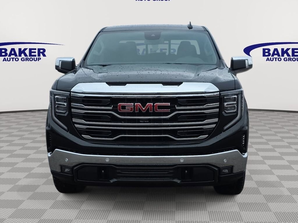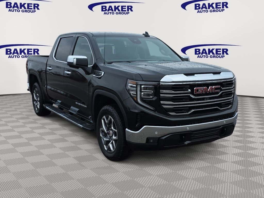 Onyx Black 2026 GMC Sierra 1500 SLT 4WD 10-Speed Automatic EcoTec3 5.3L V8 Sierra 1500 SLT, 4D Crew Cab, EcoTec3 5.3L V8, 10-Speed Automatic, 4WD, Onyx Black, Jet Black Leather, Hitch Guidance, Navigation System, Standard Suspension Package, Trailering Package.