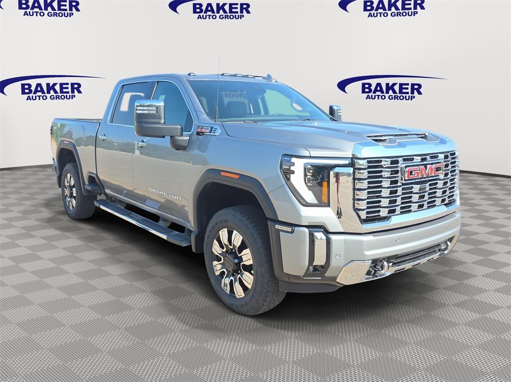 Sterling Metallic 2026 GMC Sierra 2500HD Denali 4WD 10-Speed Automatic Duramax 6.6L V8 Turbodiesel Sierra 2500HD Denali, 4D Crew Cab, Duramax 6.6L V8 Turbodiesel, 10-Speed Automatic, 4WD, Sterling Metallic, Black Leather, 120-Volt Bed Mounted Power Outlet, 120-Volt Instrument Panel Power Outlet, 2 Charge-Only Rear USB Ports, 2 Charge/Data USB Ports Inside Center Console, 2 USB Ports, 2-Speed Active Transfer Case, Bed View Camera w/2 Trailer Camera Provisions, Bose Premium 7-Speaker Sound System, Deep-Tinted Glass, Denali Reserve Package, Electric Rear-Window Defogger, Floor-Mounted Center Console, Front Rain-Sensing Wipers, Gooseneck/5th Wheel Prep Package, HD Surround Vision, Heated 2nd Row Outboard Seats, Heated Driver & Front Outboard Passenger Seats, Hill Descent Control, Inside Rearview Auto-Dimming Rear Camera Mirror, Keyless Open & Start, LED Cargo Area Lighting, LED Smoked Amber Roof Marker Lamps, Manual Tilt-Wheel/Telescoping Steering Column, Multicolor 15 Diagonal Head-Up Display, OnStar Services Capable, Polished Exhaust Tip, Power Front Passenger Windows w/Express Up/Down, Power Sliding Rear Window w/Defogger, Power Sunroof, Preferred Equipment Group 5SA, Push Button Start, Rear Cross Traffic Alert, Rear Wheelhouse Liners, Remote Vehicle Starter System, Safety Alert Seat, Signature Chrome Denali Grille, SiriusXM w/360L Trial Subscription, Spray-On Pickup Bedliner w/GMC Logo, Steering Wheel Audio Controls, Technology Package, Trailer Cam Provisions & Trailer Viewing Software, Trailer Side Blind Zone Alert, Ultrasonic Front & Rear Park Assist, Unauthorized Entry Theft-Deterrent System, Universal Home Remote, Ventilated Driver & Front Passenger Seats, Wireless Charging, Wireless Phone Projection, X31 Off-Road Package. Price includes: $500 - Purchase Allowance. Exp. 11/03/2025