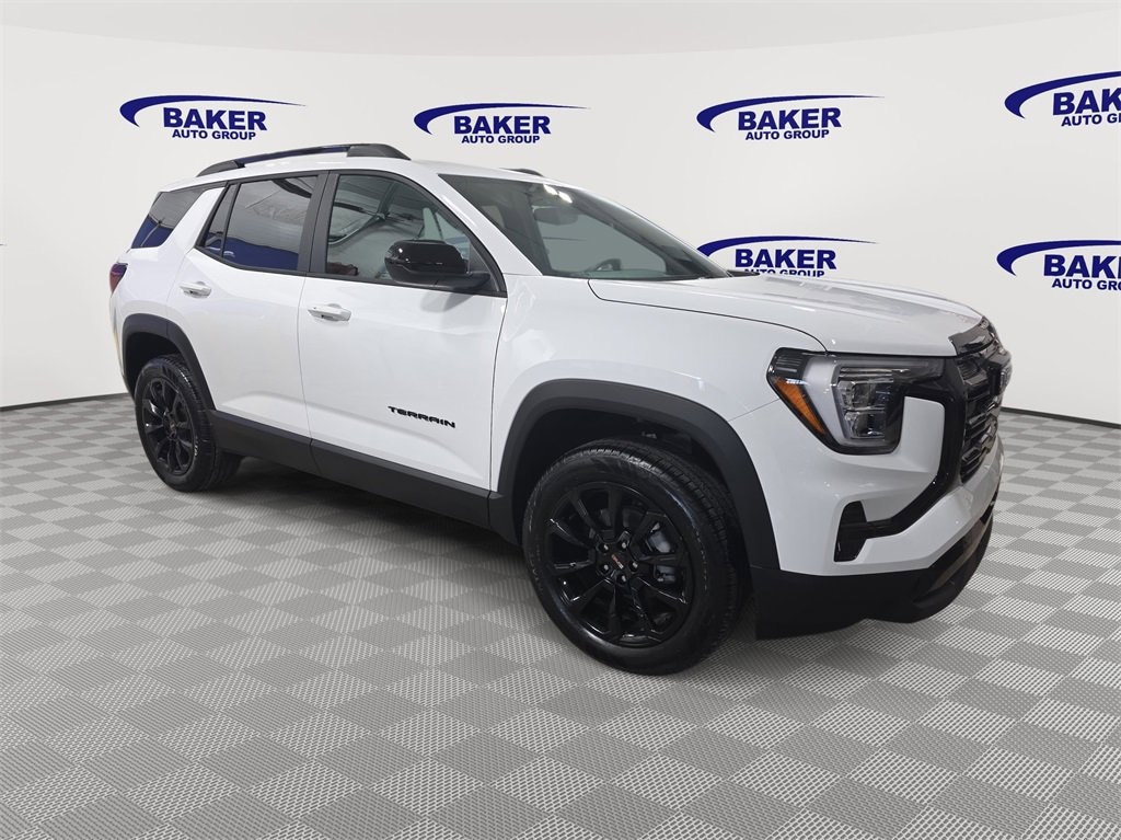 Summit White 2026 GMC Terrain Elevation AWD 8-Speed Automatic with Overdrive 1.5L DOHC Terrain Elevation, 4D Sport Utility, 1.5L DOHC, 8-Speed Automatic with Overdrive, AWD, Summit White, After Dark Cloth, Navigation System.