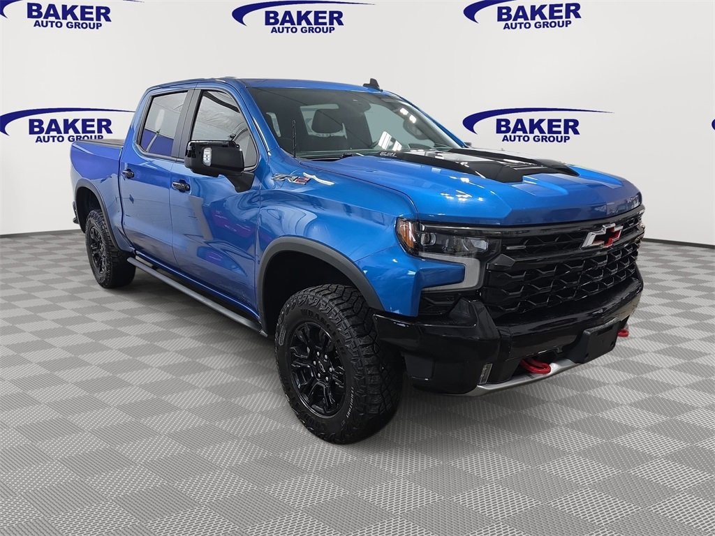 Certified. Priced below KBB Fair Purchase Price! 4WDSilverado 1500 ZR2, 4D Crew Cab, EcoTec3 6.2L V8, 10-Speed Automatic, 4WD, Glacier Blue Metallic, Jet Black/Graystone Leather, 10-Way Power Driver Seat w/Lumbar, 10-Way Power Passenger Seat Adjuster w/Lumbar, 12.3 Multicolor Reconfigurable Digital Display, 120-Volt Instrument Panel Power Outlet, 15 Diagonal Multicolor Head-Up Display, 170 Amp Alternator, 2 USB Data Ports, 2nd Row Heated Outboard Seats, Adaptive Cruise Control, All-Weather Floor Liner (LPO), Auto-Dimming Inside Rear-View Mirror, Auto-Locking Rear Differential, Bed View Camera, Bluetooth® For Phone, Chevytec Spray-On Black Bedliner, Color-Keyed Carpeting Floor Covering, Compass, Deep-Tinted Glass, Driver Memory, Dual Exhaust, Dual Rear USB Ports (Charge Only), Electric Rear-Window Defogger, Electrical Steering Column Lock, Electronic Cruise Control, EZ Lift Power Lock & Release Tailgate, Floor Mounted Center Console, Front LED Fog Lamps, Front Rainsensing Wipers, HD Surround Vision, Heated Driver & Front Outboard Passenger Seats, Heated Steering Wheel, Heavy-Duty Air Filter, High Gloss Black Mirror Caps, Hill Descent Control, Hitch Guidance, Hitch Guidance w/Hitch View, Integrated Trailer Brake Controller, Keyless Open & Start, Leather Wrapped Steering Wheel, LED Cargo Area Lighting, Manual Tilt/Telescoping Steering Column, OnStar & Chevrolet Connected Services Capable, Outside Heated Power-Adjustable Mirrors, Performance Red Recovery Hooks, Perimeter Lighting, Power Front Passenger Windows w/Express Up/Down, Power Front Windows w/Driver Express Up/Down, Power Rear Windows w/Express Down, Power Sliding Rear Window w/Rear Defogger, Power Tilt & Telescoping Steering Column, Preferred Equipment Group 3LT, Rear Camera Mirror, Rear Cross Traffic Alert-Braking, Rear Park Assist, Rear Pedestrian Detection, Rear Wheelhouse Liners, Remote Vehicle Starter System, Safety Alert Seat, SiriusXM w/360L, Standard Tailgate, Steering Wheel Audio Controls, Technology Package, Theft Deterrent System (Unauthorized Entry), Trailer Camera Provisions, Trailer Side Blind Zone Alert, Trailering App, Trailering Package, Universal Home Remote, Up-Level Rear Seat w/Storage Package, Ventilated Driver & Front Passenger Seats, Wireless Charging, Wireless Phone Projection, ZR2 Suspension Package.Chevrolet Certified Pre-Owned Details:* 24 months/24,000 miles (whichever comes first) Certified Pre-Owned Scheduled Maintenance Plan and 3 days/150 miles (whichever comes first) Vehicle Exchange Program. SiriusXM 3-month trial subscription.* Powertrain Limited Warranty: 72 Month/100,000 Mile (whichever comes first) from original in-service date* Warranty Deductible: $0* Roadside Assistance* Vehicle History* Transferable Warranty* 172 Point Inspection* Limited Warranty: 12 Month/12,000 Mile (whichever comes first) from certified purchase date