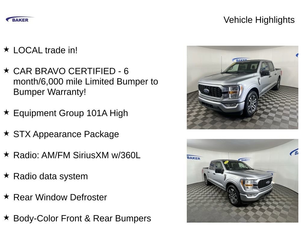 New Price! Iconic Silver Metallic 2022 Ford F-150 XL RWD 10-Speed Automatic 2.7L V6 EcoBoost LOCAL trade in!, CAR BRAVO CERTIFIED - 6 month/6,000 mile Limited Bumper to Bumper Warranty!, F-150 XL, 2.7L V6 EcoBoost, RWD, Iconic Silver Metallic, Black Cloth, 20 6-Spoke Machined-Aluminum Wheels, 3.55 Axle Ratio, Body-Color Front & Rear Bumpers, Box Side Decals, Class IV Trailer Hitch Receiver, Cruise Control, Equipment Group 101A High, Extended Range 36 Gallon Fuel Tank, Fog Lamps, Lane-Keeping System, Molded-In Color Black Honeycomb Style Grille, Pre-Collision Assist w/Automatic Emergency Braking, Radio data system, Radio: AM/FM SiriusXM w/360L, Rear Window Defroster, Rear Window Fixed Privacy Glass, Rear-View Camera, Reverse Sensing System, STX Appearance Package, SYNC 4 w/Enhanced Voice Recognition, Unique Sport Cloth 40/20/40 Front-Seats.CALL US TODAY 6168373800. 20/26 City/Highway MPG