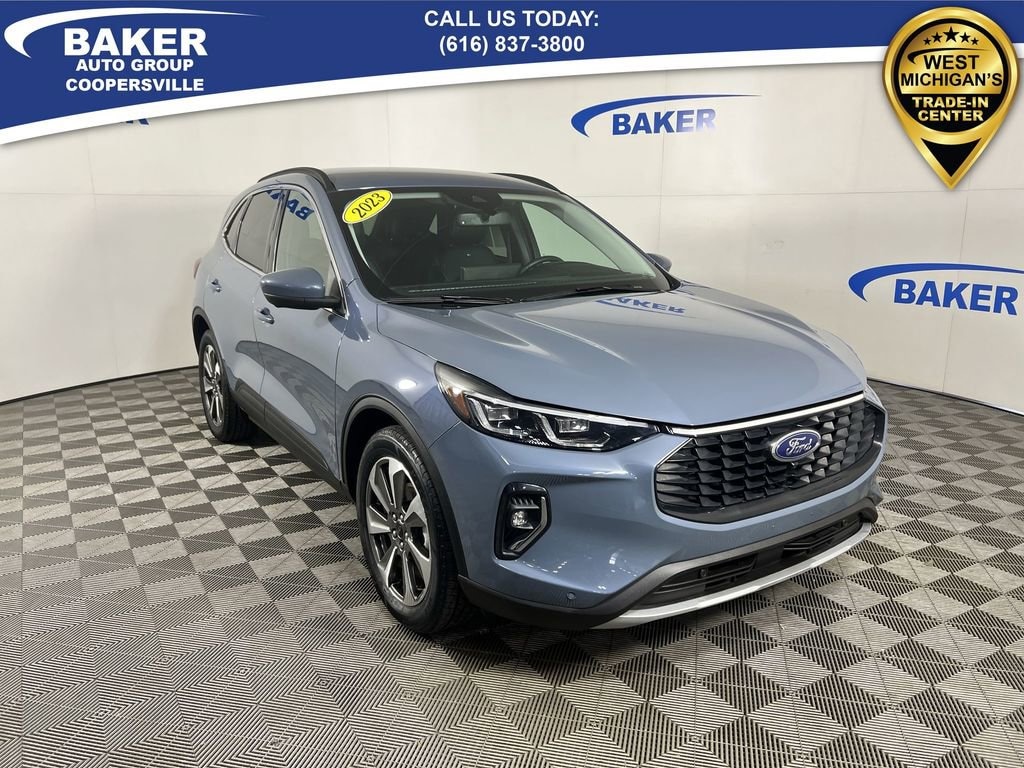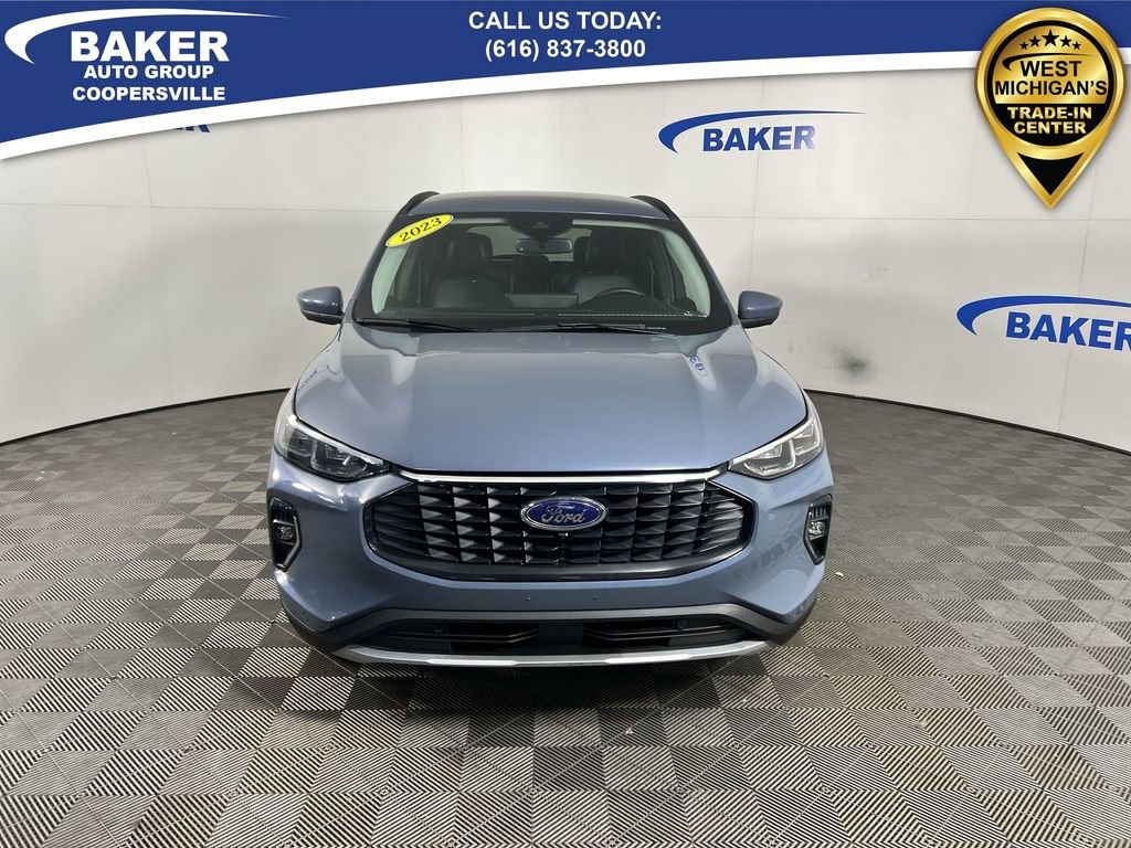 New Price! Vapor Blue 2023 Ford Escape Hybrid Platinum AWD eCVT 2.5L iVCT Non-Smoker, ONE Owner, no accidents, CARFAX CERTIFIED,, CAR BRAVO CERTIFIED - 6 month/6,000 mile Limited Bumper to Bumper Warranty!, Escape Hybrid Platinum, 2.5L iVCT, eCVT, AWD, Vapor Blue, Ebony Premium Synthetic, Automatic temperature control, Electronic Fuel Door Release, Equipment Group 600A, Exterior Parking Camera Rear, Front dual zone A/C, Heated ActiveX Trimmed Front Sport Contour Bucket Seats, Heated steering wheel, Memory seat, Navigation system: Connected Navigation, Neutral Towing Capability, Pedestrian Alert Sounder, Power driver seat, Power Liftgate, Power passenger seat, SYNC 4 w/Enhanced Voice Recognition, Wheels: 19 Machined-Face Aluminum.